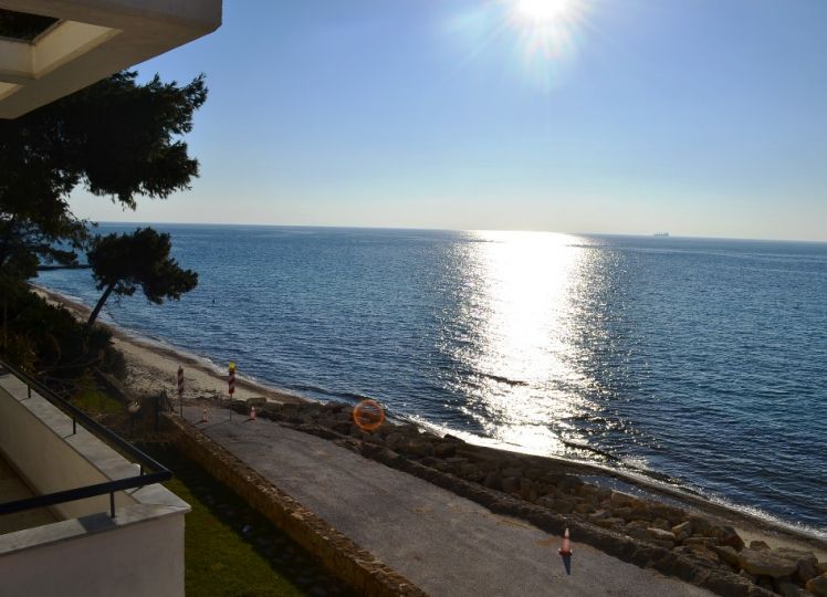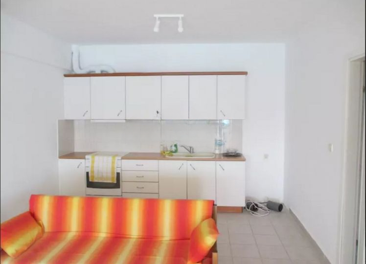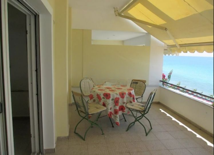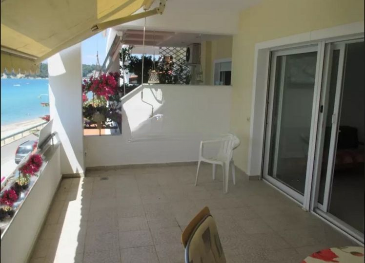 Dnevni boravak ima izlaz na veliku balkon-terasu sa zidanim roštiljem, sa otvorenim pogledom pod uglom na more i planinu.